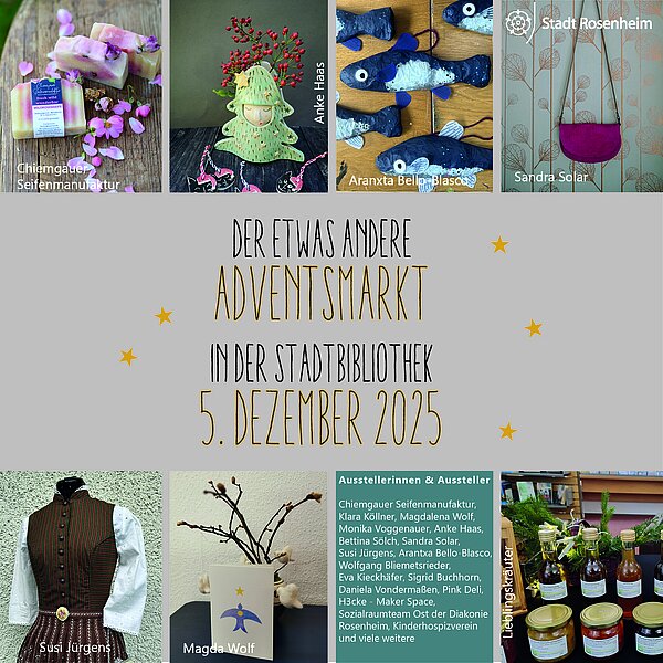 Nachhaltig, besonders, klein und fein: das sind die Attribute, die den Adventsmarkt in der Stadtbibliothek beschreiben. Regionale Handwerkskunst mit dem Schwerpunkt Nachhaltigkeit, DIY, plastikfrei und Upcycling stehen im Mittelpunkt. Zusätzlich stehen einige Extras auf dem Programm: Wie beispielsweise das jährliche Basteln mit Kind und Werk. Dabei entstehen aus nachhaltigen Naturmaterialien jedes Jahr die tollsten Dinge.